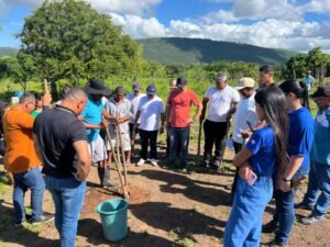 O evento, que ocorreu na Escola de Música Pedro Basílio dos Santos, das 8h às 16h, ofereceu aulas práticas sobre plantio, mudas enxertadas, kits de frutíferas, além de lanche e almoço aos participantes.