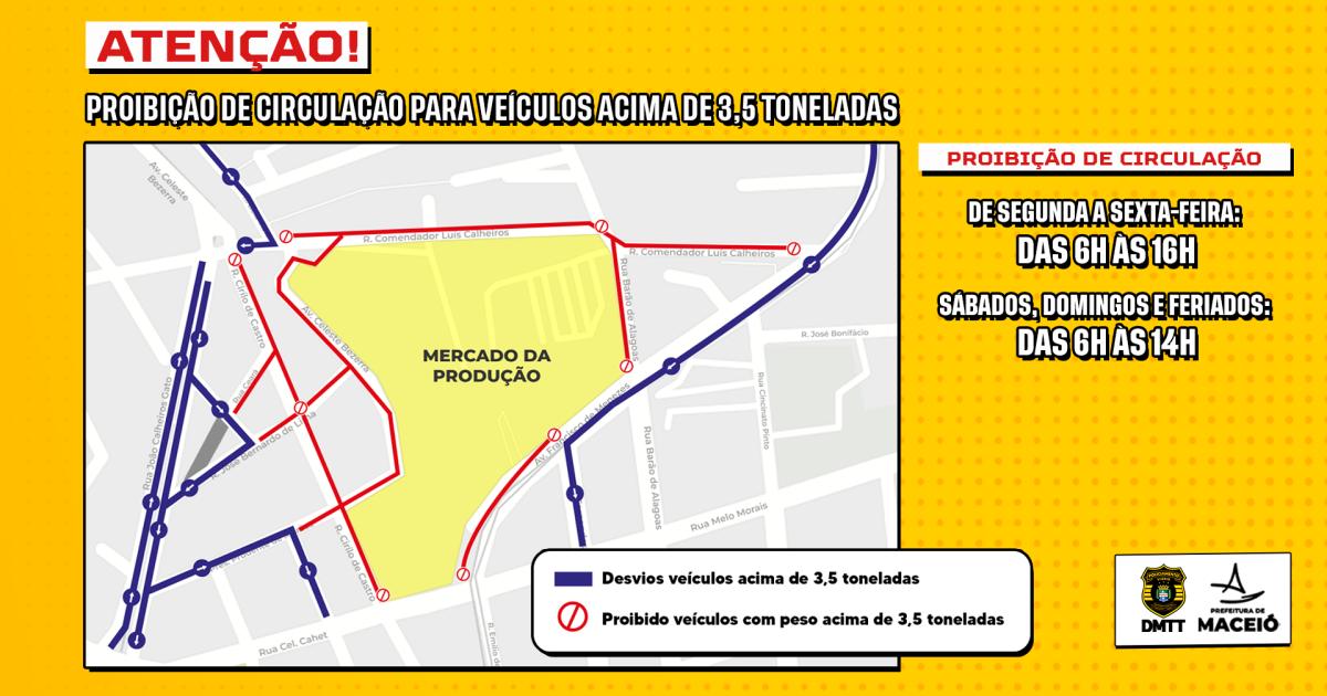 DMTT regulamenta circulação para veículos acima de 3,5 toneladas no entorno do Mercado da Produção. Arte: Ascom DMTT